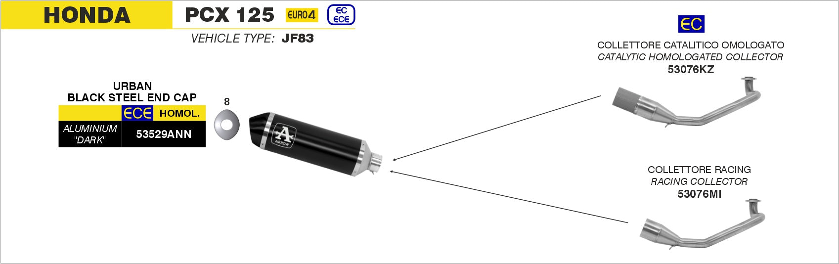 Collettore catalitico omologato per scarico Urban, Moto Compatibili: Honda PCX 125 |