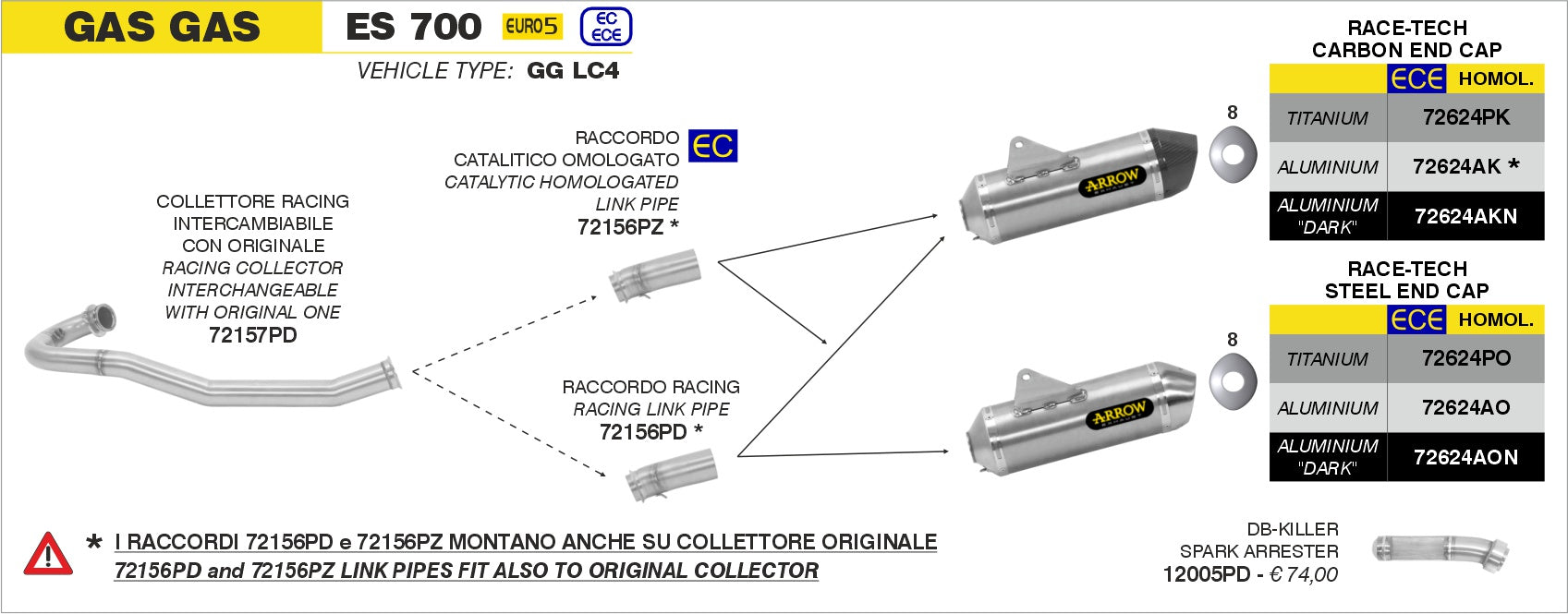 Collettore racing intercambiabile con l'originale, Moto Compatibili: Gas Gas ES 700 |