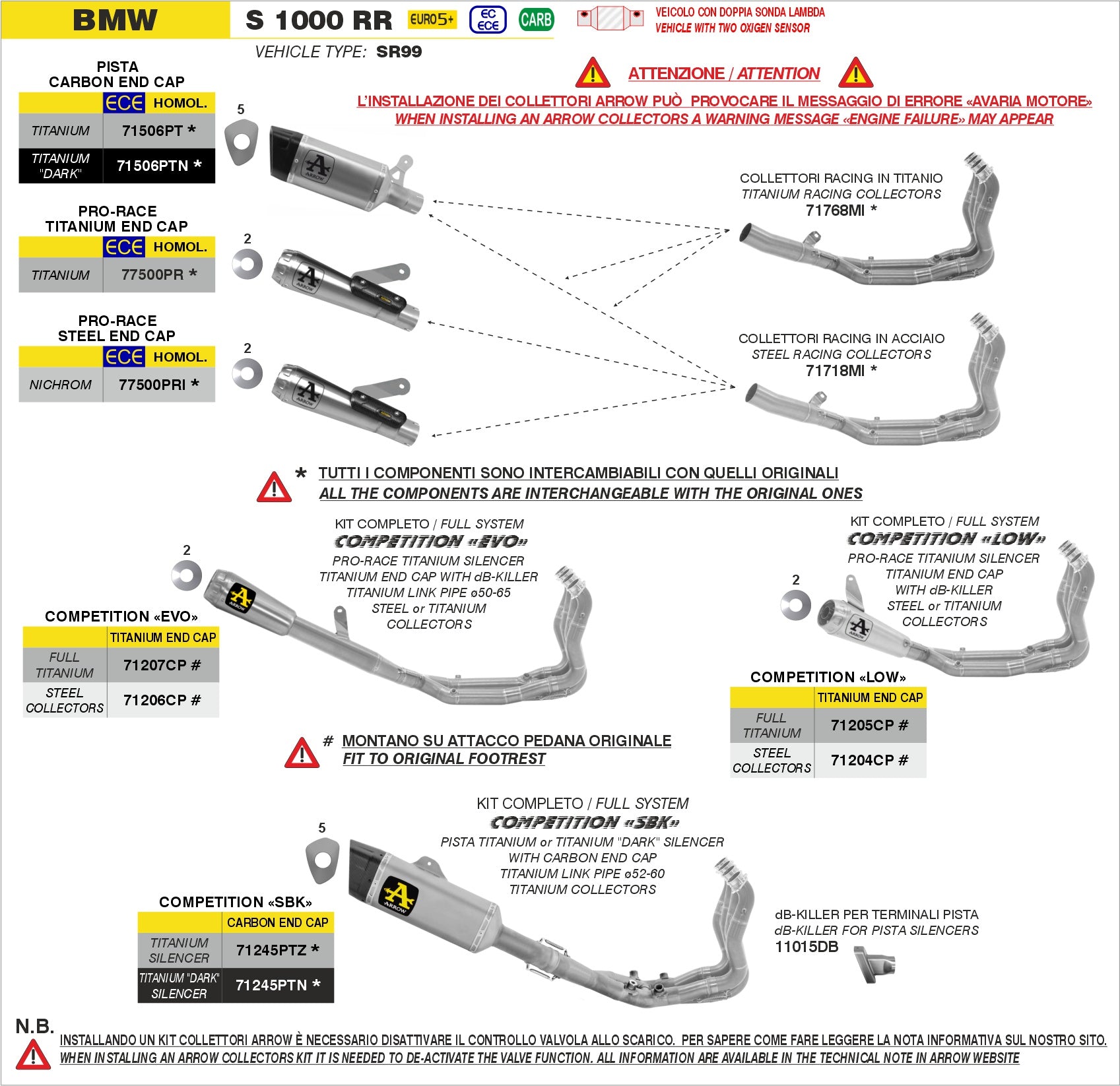 Kit completo COMPETITION SBK Full Titanium con terminale titanio Dark, Moto Compatibili: BMW S 1000 RR |