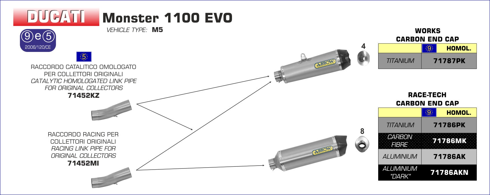 Terminale Race-Tech alluminio con fondello carby, Moto Compatibili: Ducati Monster 1100 EVO |