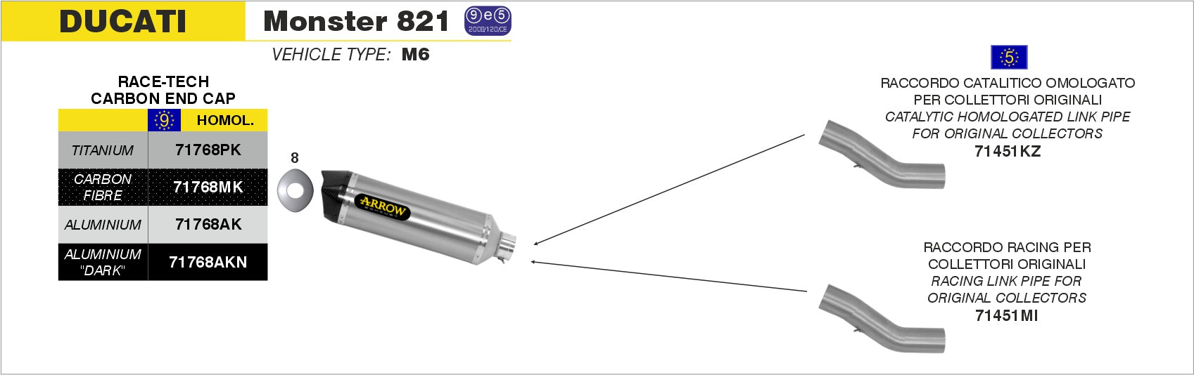 Terminale Race-Tech titanio con fondello carby, Moto Compatibili: Ducati Monster 821 |